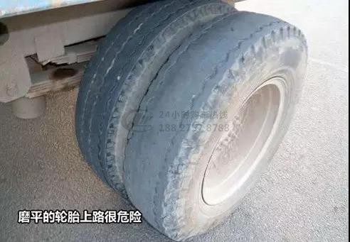 检查轮胎时发现轮胎花纹已经磨干磨平,说明轮胎的寿命已尽,必须更换。